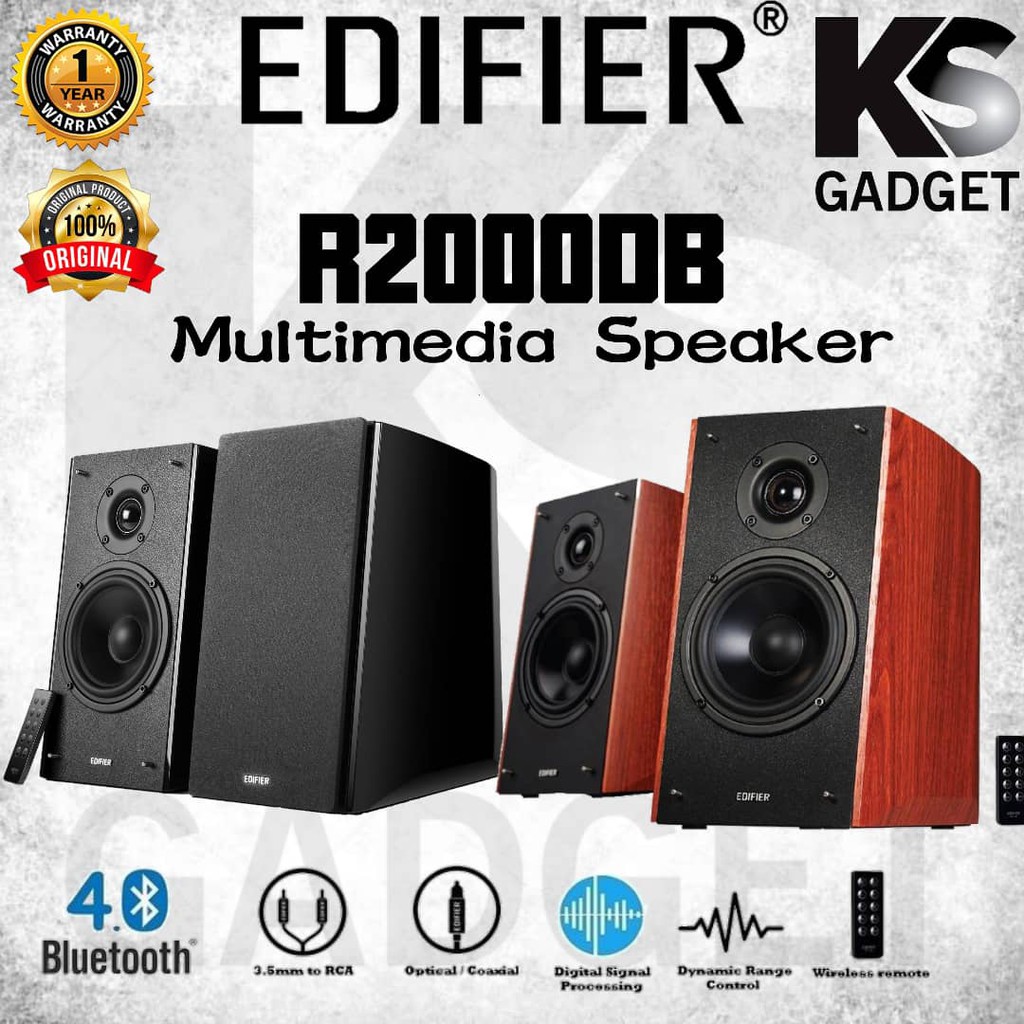 Edifier R2000db 120w Rms Powered Bluetooth Bookshelf Speakers Piano Black Lazada Singapore from sg-test-11.slatic.net Using newly developed 25mm silk. As well as the r2000db speakers edifier have included a range of cables, there is one (long) cable for connecting the left and right speaker, a 3.5 to rca cable, an rca to rca cable and an optical cable. Many users who have a certain understanding of audio will know that dsp digital in the previous introduction, the r2000db speaker can support 3.5mm wired connection as well as wireless bluetooth connection and optical fiber. Encased in mdf wooden enclosure to minimize acoustic resonance. Encased in mdf wooden enclosure to minimize acoustic resonance, edifier's speaker will produce spectacular sound. Edifier r2000db wireless bluetooth active bookshelf speakers (pair). You will enjoy spectacular sound beyond exceptions with the r2000db speakers. Get the latest news from edifier.